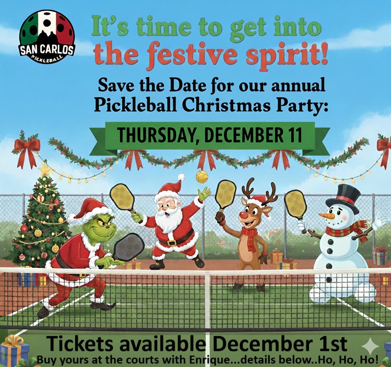 📍 Venue: La Palapa Griega (outdoors but there are space heaters). Dress in your favorite Holiday or Pickleball gear.